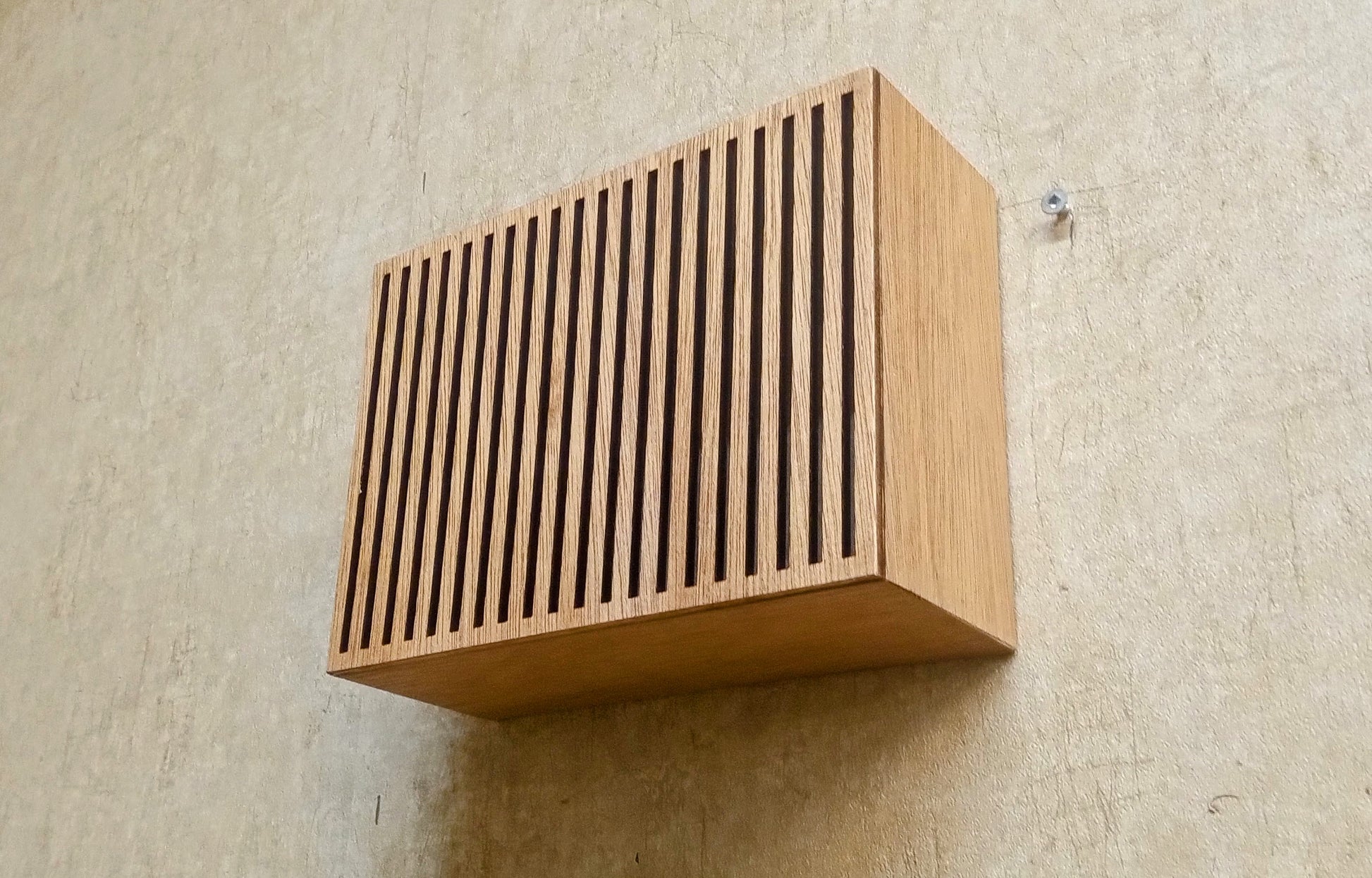 Le cache-sonnette Slate est un coffret en bois fabriqué à la main — quatre côtés pleins et un panneau avant décoratif découpé au laser — conçu pour recouvrir votre sonnette existante et métamorphoser instantanément votre entrée. Disponible en version verticale ou horizontale pour s'harmoniser avec votre sonnette et votre décor. Fabriqué sur mesure dans notre atelier de Montréal.